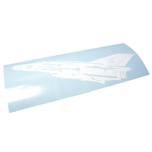 Наклейка «Истребитель МиG-21» изготавливается из виниловой пленки на выбор, методом плоттерной резки (наклейка без фона) и наносится на любую ровную и гладкую поверхность: пластик, стекло, металл. Рекомендуем на стекло автомобиля заказывать наклейку из белой или жёлтой виниловой плёнки.