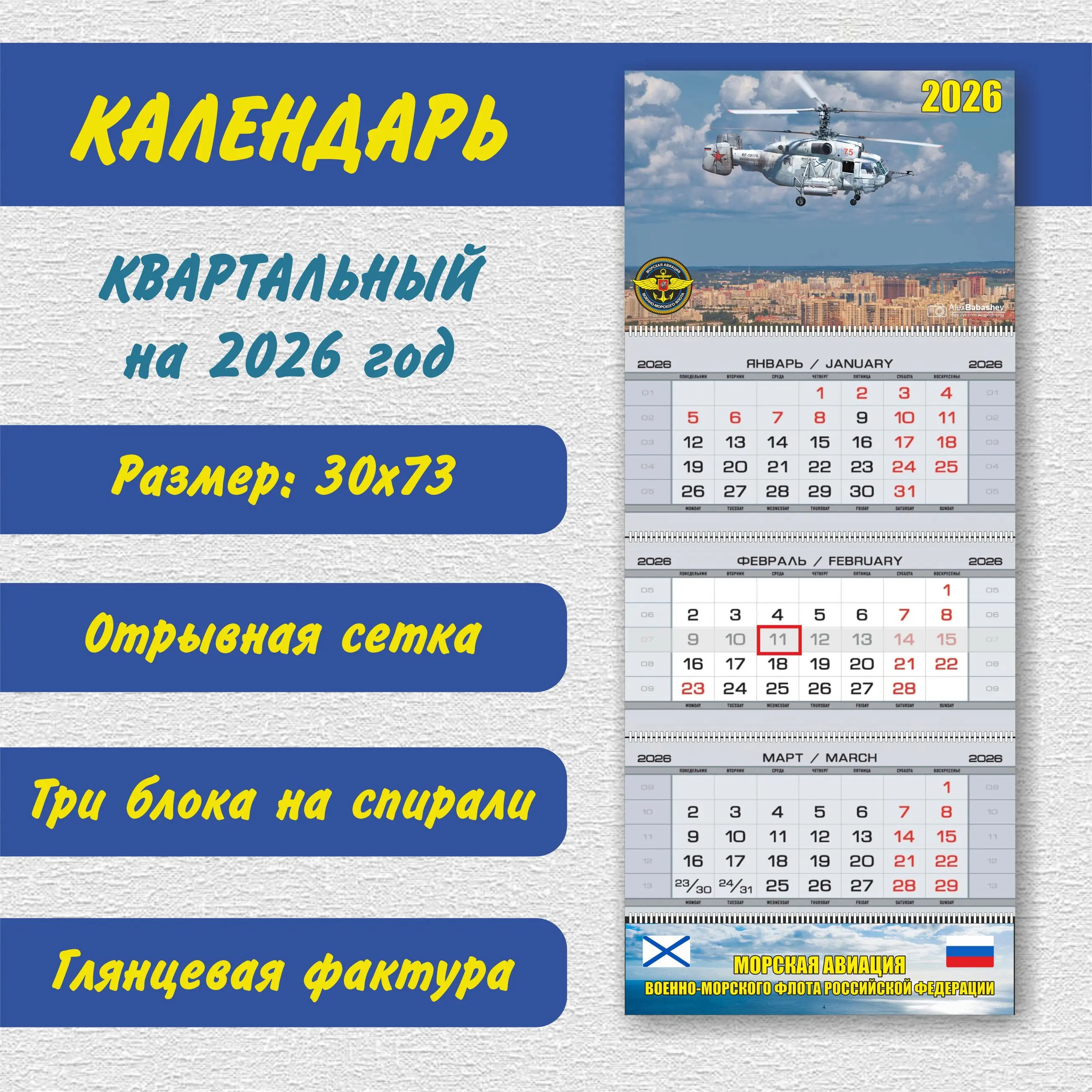 Квартальный календарь «Морская авиация ВМФ России» с вертолётом Ка-27 - состоит из трёх календарных блоков в отдельности. В наличии передвижной курсор для указания даты. Не забывайте, что яркий и красочный квартальный календарь не только полезная вещь в доме, но и прекрасный оригинальный подарок друзьям и знакомым.