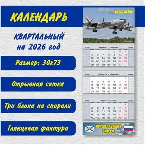 > Календарь квартальный «Морская авиация ВМФ РФ» с самолётом Ту-142